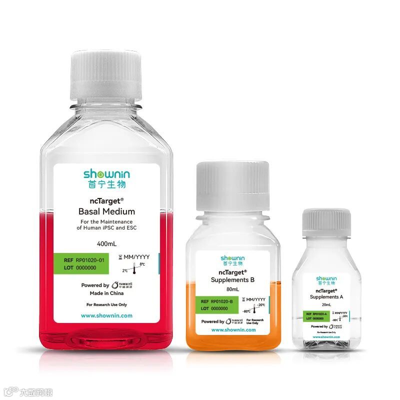 *1.将ncTarget® hPSC Medium的基础液和添加物混合配制成ncTarget完全培养基。