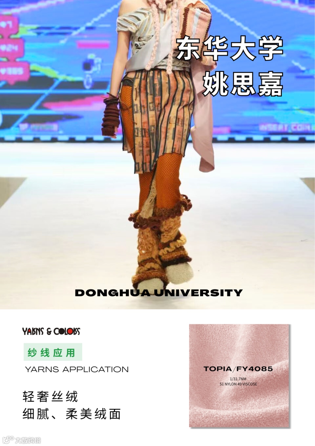 今年,我们携手东华大学服装与艺术设计学院,支持多位毕业生以品牌纱线为媒介,完成了一场关于材质、色彩与可持续的时尚实验。