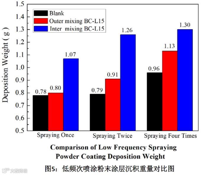 对比添加不同电荷调整剂对粉末涂料静电喷涂上粉性能的影响。