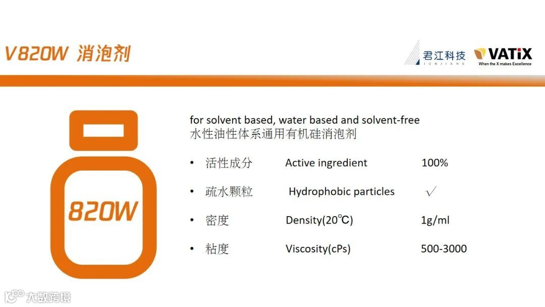 水性体系中可迅速分散和铺展,快速脱泡,通用性强