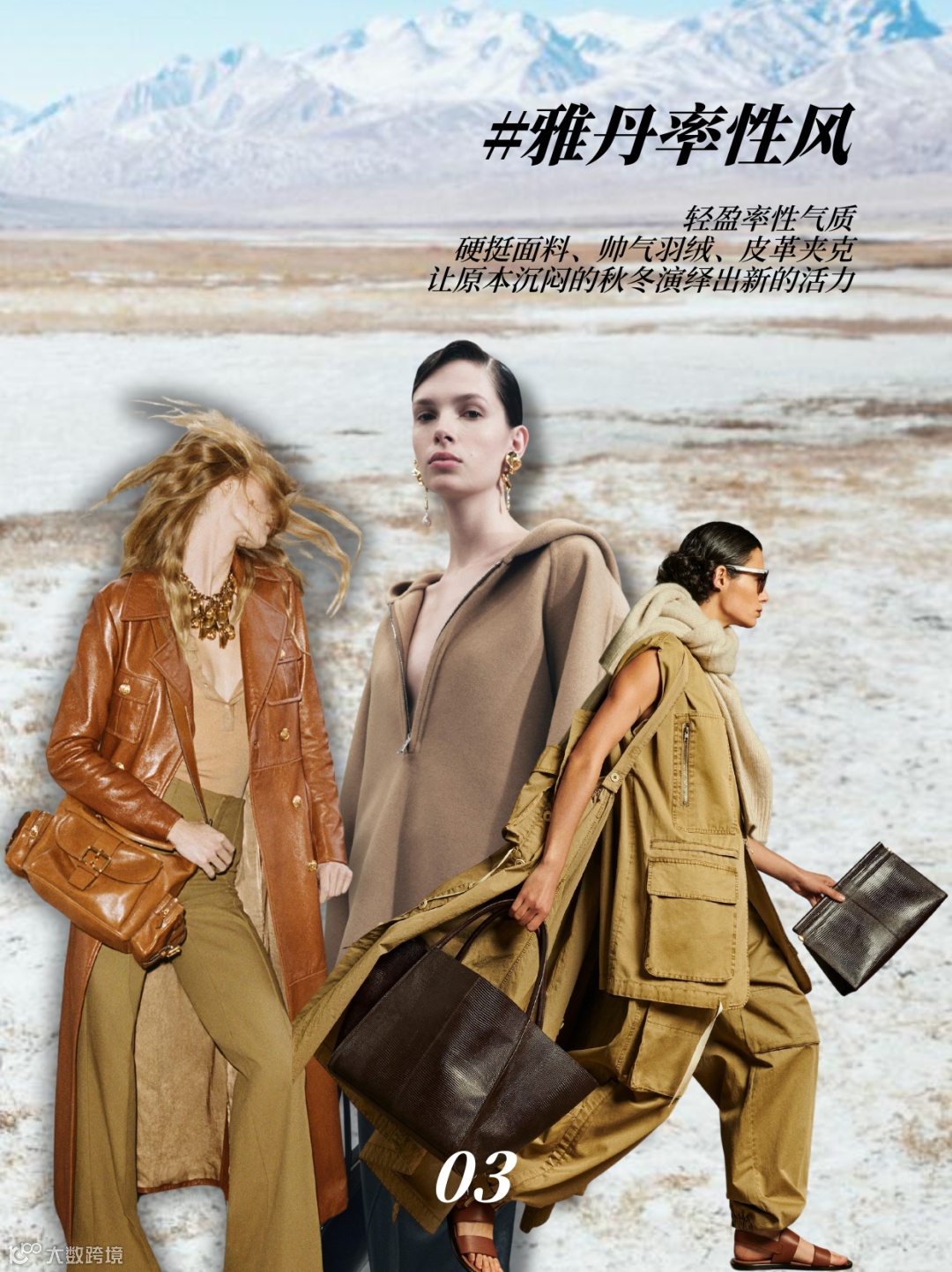 2024年秋冬,时尚界掀起了一股名为“雅丹风”的新潮流。这种风格以自然为灵感,融合了地质奇观与现代美学,呈现出刚硬而精致的特色。