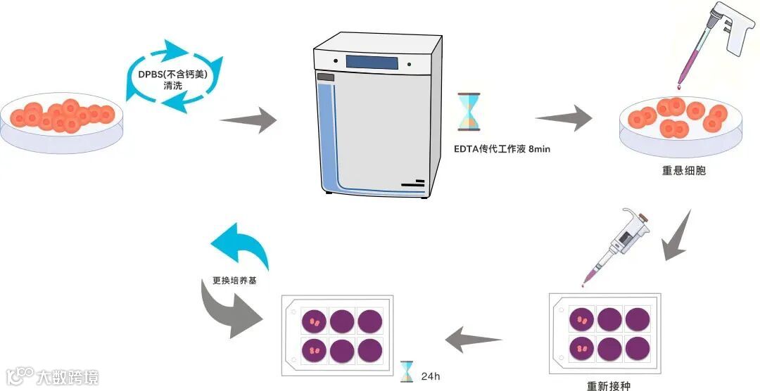 为了规避这一风险,科研人员已经研发出多种无酶解离方法。其中,基于EDTA的传代程序因其高效性和稳定性而备受青睐,并已成功应用于hPSC的衍生与扩增[3][4]。