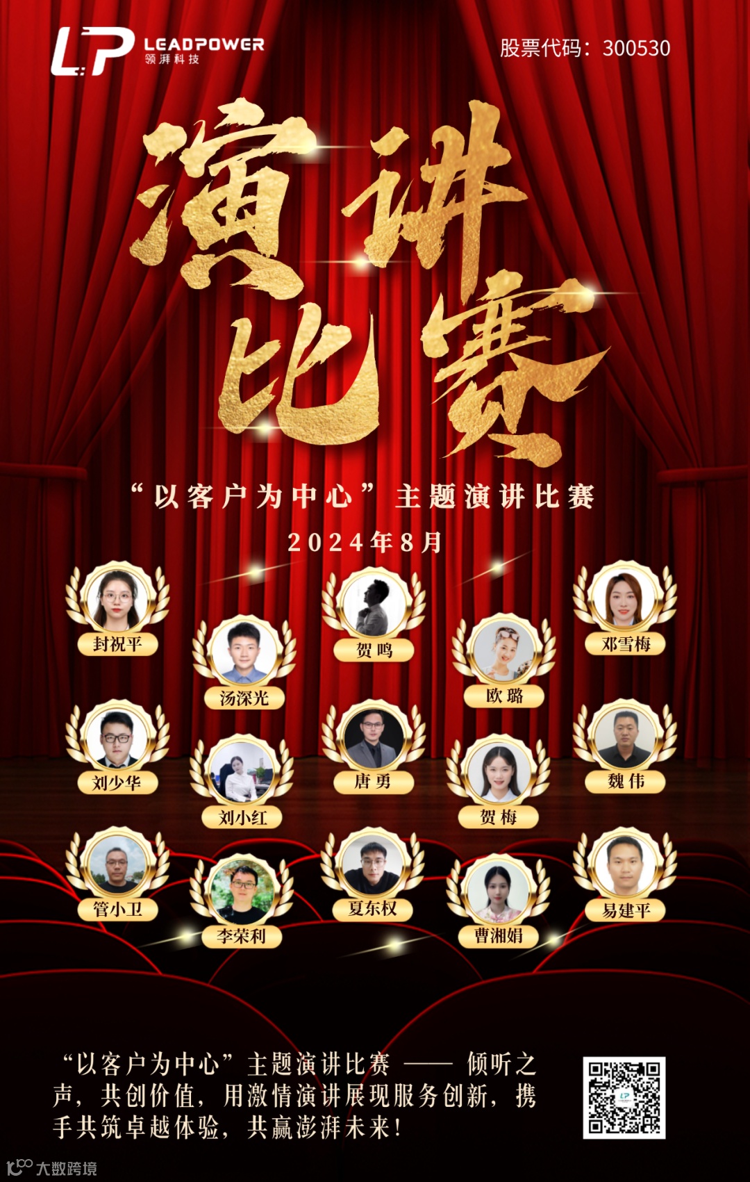 为提升企业凝聚力、建设企业文化、发掘优秀人才,8月22日,湖南领湃科技集团股份有限公司“以客户为中心”主题演讲比赛在总部208