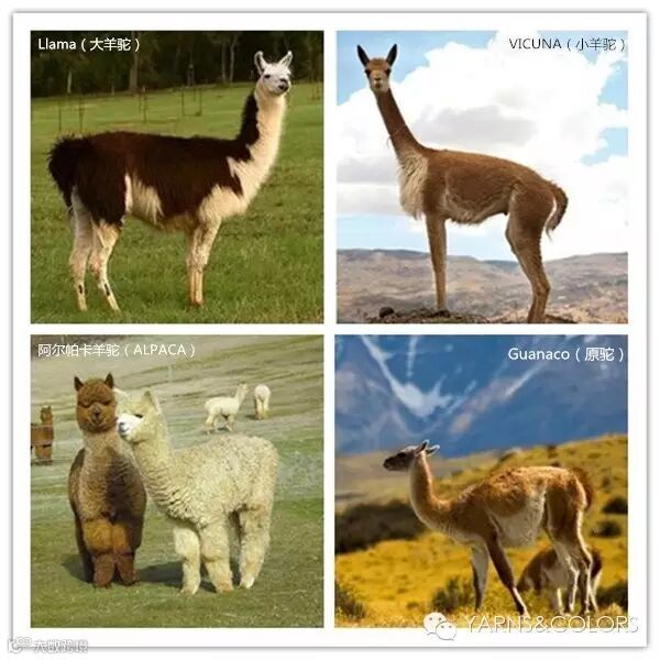 南美羊驼的四个种类中,小羊驼(Vicuna)和原驼(Guanaco)仍然保持着野性,受到人们的保护。而大羊驼(Llama)和阿尔帕卡羊驼(ALPACA)经过大约一万年的进化,已成为羊驼中用于纺织纤维的主要品种。