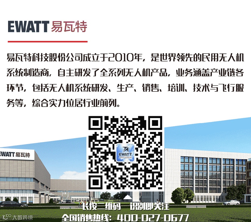 在工业4.0浪潮的推动下,易瓦特在工业级无人机领域紧扣中国制造2025 的主旨,在无人系统的应用领域,智创无限可能。在新技术、新平台、新材料等重要领域和前沿方向的交叉融合,从无人机系统制造商及服务商到全产业生态集群的跨越成长,必将引发新一轮的行业的变革。