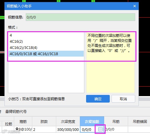 图纸中次梁加筋的信息不多的情况下,可选择这一种设置,钢筋信息的输入法有四种,根据自己的要求输入。
