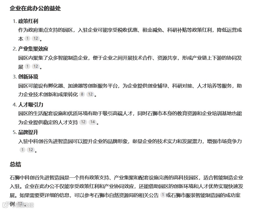 那么当企业家向DeepSeek询问中科创谷先进智造园的基本情况和入驻建议时,它是怎么回答的呢?