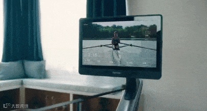 Hydrow的主要产品就是室内划艇健身器材,为用户提供模拟户外水上划艇的逼真体验。为了营造出真实感,Hydrow的划艇机配有联网的22英寸高清触摸屏显示器,用户可以在锻炼时观看模拟户外划艇场景和健身教练指导视频。