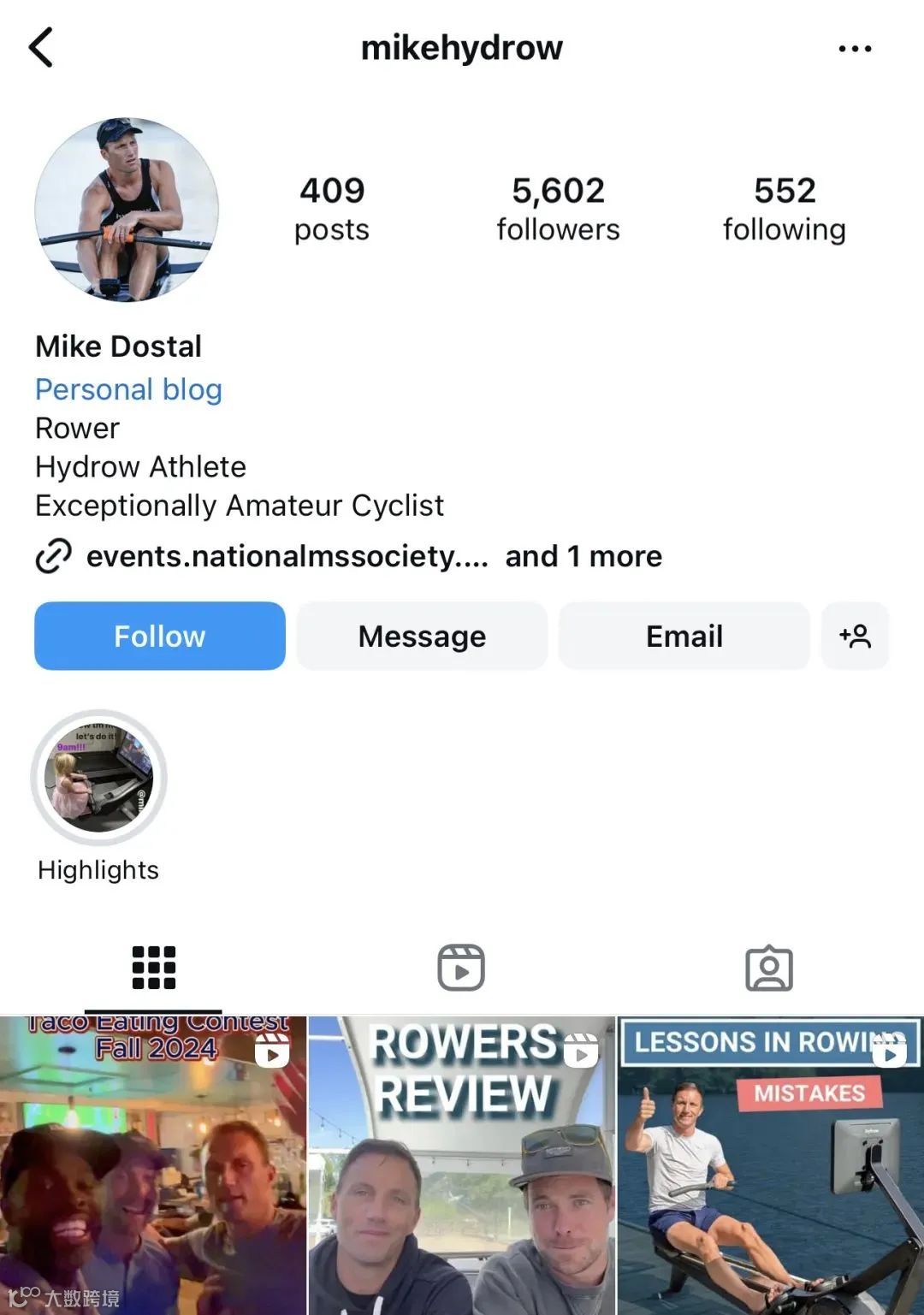Mike Dostal同样也是Hydrow的品牌签约划船运动员,同时也是一位骑行爱好者,相比前面两位“明星型”体育红人,他的内容主要聚焦在专业领域,比如划船机测评、划船技巧动作、运动恢复等。相比KOL,他更像是KOP(key opinion professional),即专业型达人,品牌也需要这类型的红人,增强本身在内容服务和专业领域内的品牌可见度,并通过他们去辐射到其他运动爱好者。
