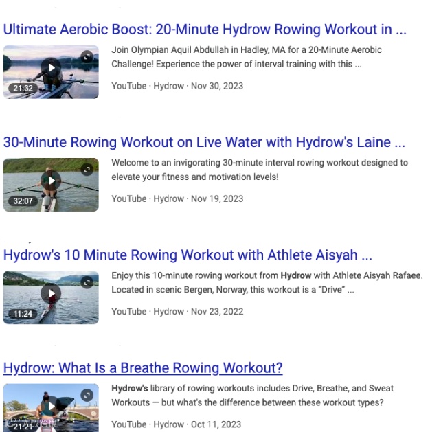 在品牌的YouTube频道,Hydrow发布了沉浸式划船的长视频,运动本身是枯燥的,但自然场景的变化就会带来独特的美好体验,Hydrow就是通过打造这样的现场户外现实,创造了差异化的用户体验,相比其他单一的健身器材,自然就更能提升了留存率。