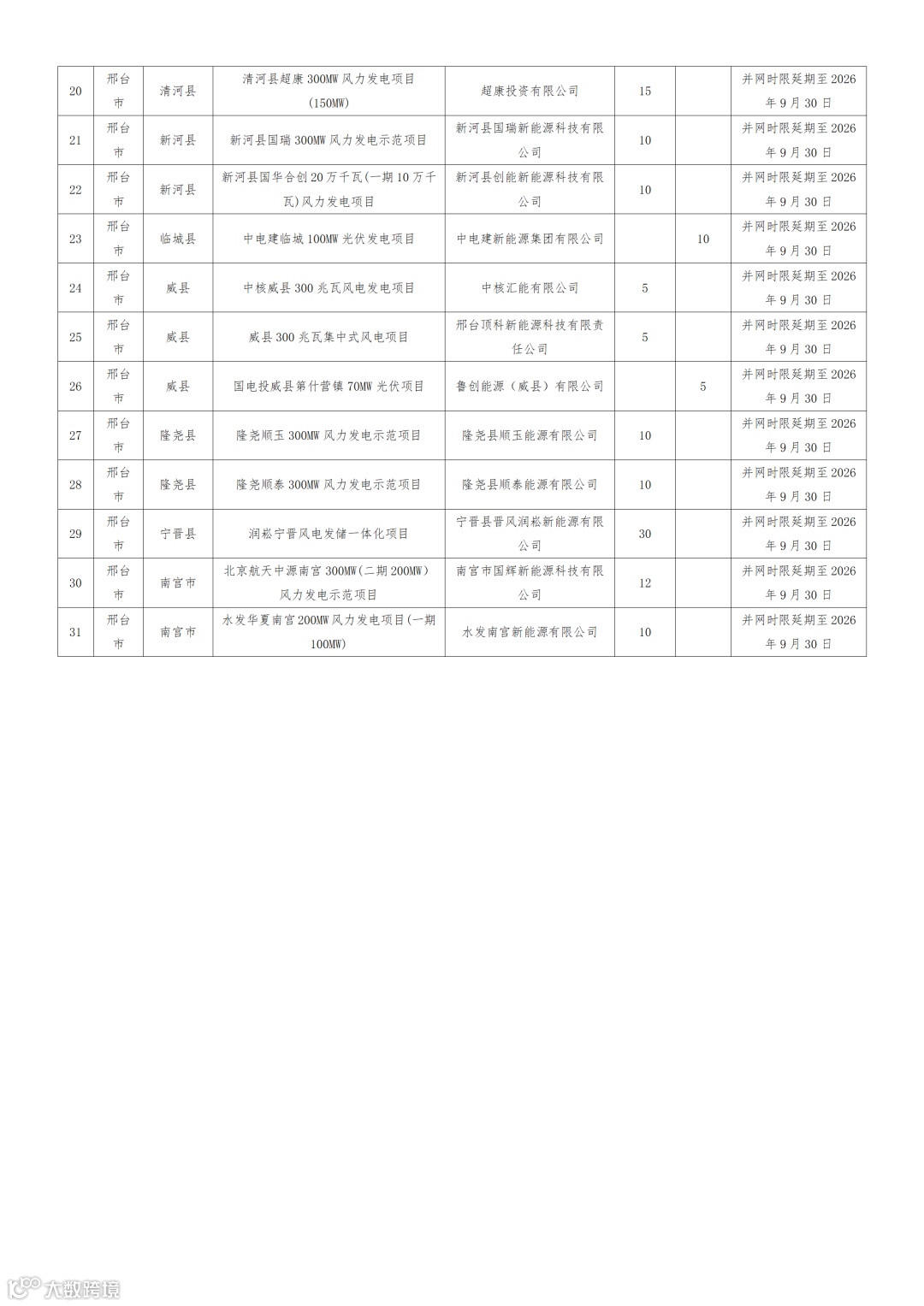 其中,到期调整的风、光项目总规模为14.9GW,光伏5.71GW、风电9.18GW。其中取消的项目规模总计为为1222MW,光伏459MW、风电764MW;调减的项目规模约497MW;其余则全部为延期项目,最迟均将于2026年年底并网。