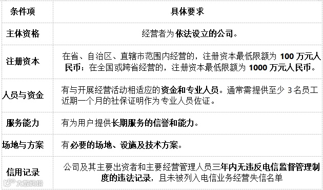 公司合规:确保公司营业执照经营范围包含“第二类增值电信业务”或相关表述,注册资本满足要求。