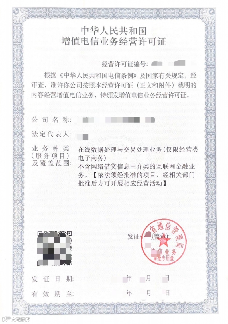 省内许可证:业务仅限于某一省级行政区域内,由该省、自治区、直辖市的通信管理局审批颁发