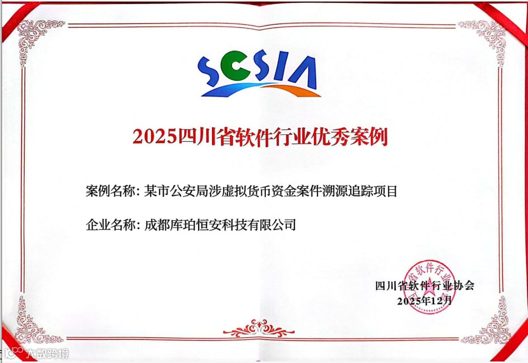 库珀恒安“某市公安局涉虚拟货币资金案件溯源追踪项目”获评2025年四川省软件行业优秀案例。