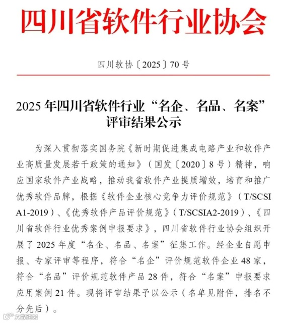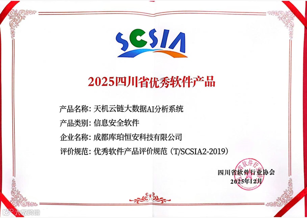 库珀恒安“天机云链大数据AI分析系统”获评2025年四川省软件行业优秀软件产品。