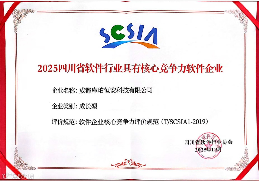 库珀恒安凭借扎实的技术积累和稳健的成长态势获评2025年四川省软件行业核心竞争力软件企业(成长型)。