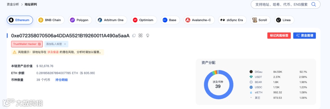 👉目前被盗损失资金超600万USDT,当前黑客实体持有约270万USDT资产,当前黑客地址已列入监控中。