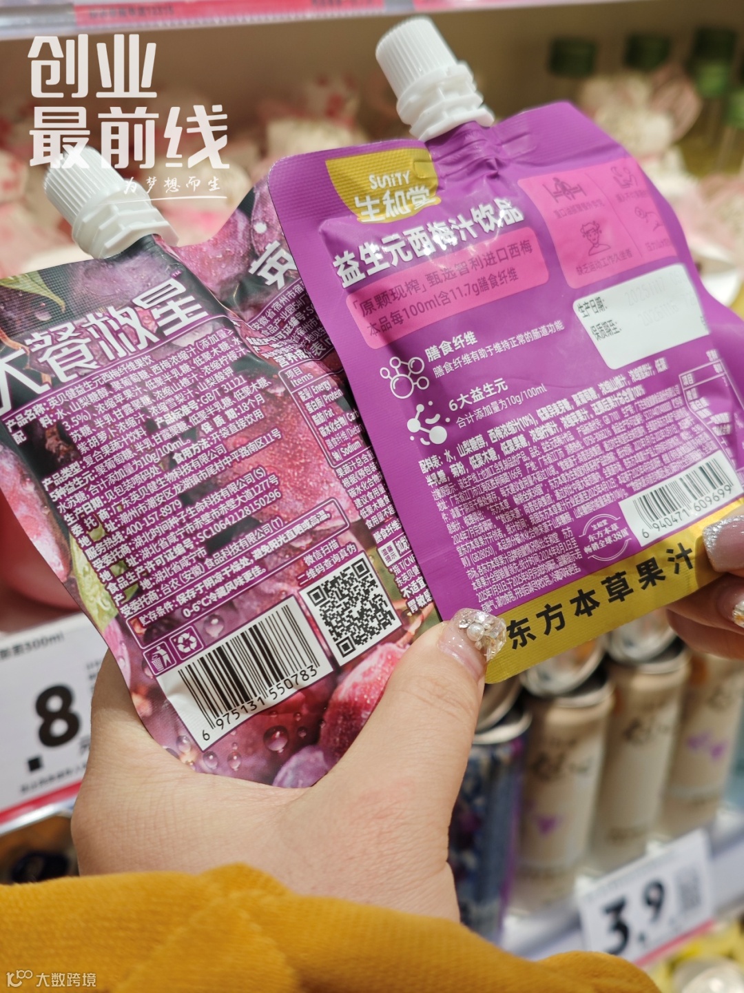 比如「创业最前线」走访某折扣店时,7.9元规格100ml的英贝健西梅汁旁边,就摆放着2.9元规格120ml生和堂西梅汁,价格相差高达5元。