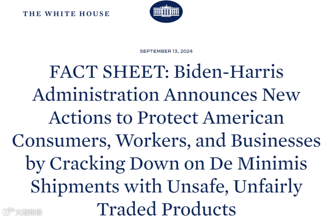 近期,拜登-哈里斯政府宣布将采取新的行动,旨在保护美国消费者、工人和企业,以解决近年来滥用小额免税进口政策激增的问题,尤其是源自中国电商平台的问题,并加强对违规货物进口美国的监管力度。