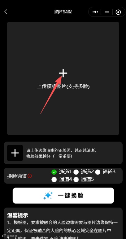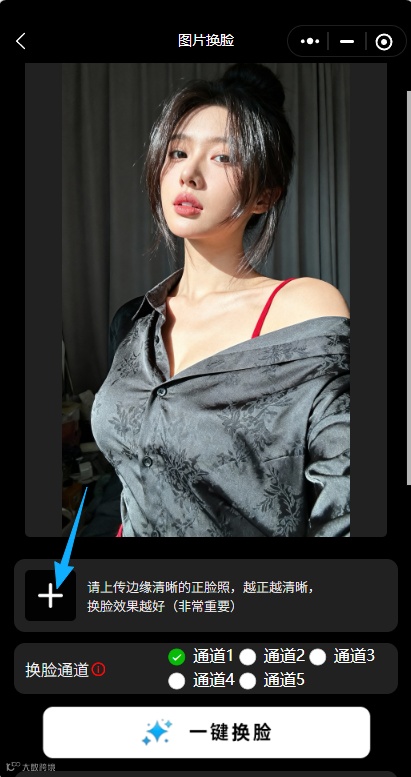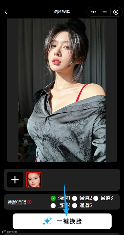 选择通道→一键换脸→保存分享!