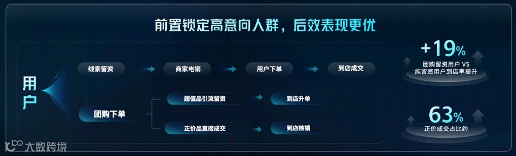 针对线索生意之“长”,将团购形式纳入线索生意,线上团购品成交后,商家相当于一次性达成了传统线索运营中的“问询+留资+转化”三个步骤,达到了缩短步骤间的间隔的效果。
