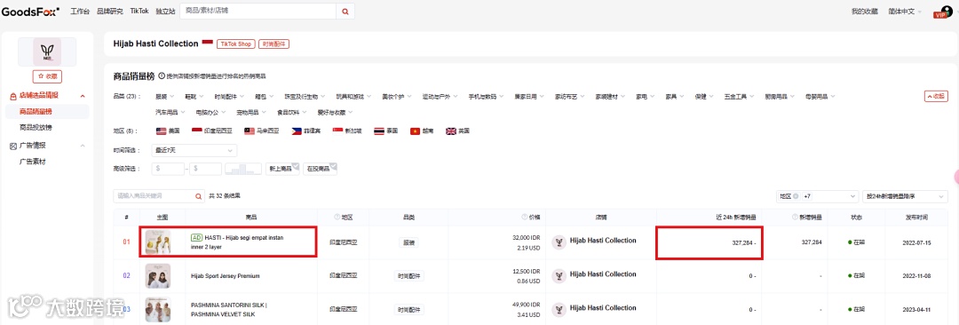 Hijab Hasti Collection 的“时尚头巾”在印度尼西亚掀起购买热潮。根据 GoodsFox 数据显示,这款头巾不仅价格亲民,仅售2.19美元,而且款式多样,深受当地消费者喜爱。近24小时内,该商品在 TikTok 上的销量达到了327284件,成为当日的爆款商品。这一数据再次证明了 TikTok Shop 在东南亚地区的强大带货能力,也反映出印尼市场对时尚头巾的庞大需求。随着社交媒体电商的兴起,Hijab Hasti Collection 等品牌正通过 TikTok 平台,实现销售业绩的快速增长。
