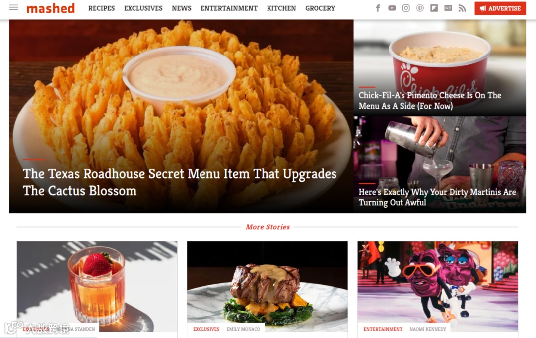 Mashed致力于为那些在饮食和烹饪中寻找乐趣的人提供服务,网站每天会报道食品杂货和休闲餐饮领域的所有热门新闻,食谱,实用技巧以及评论。Mashed也是一份多平台出版物,拥有全球每月超过2500万读者。