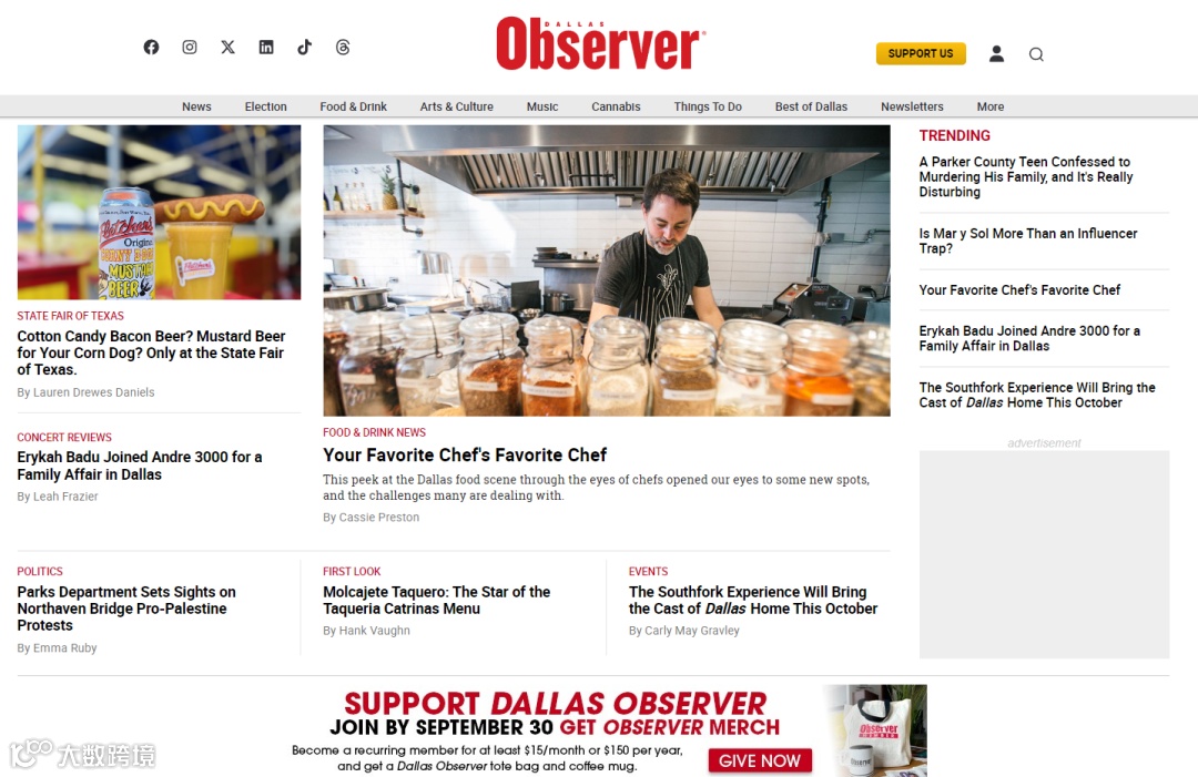 DALLAS OBSERVER是一份创办于1980年的周报,每月吸引超过100万活跃用户,同时也是美国达拉斯最佳特刊,享有盛誉。目前网站主推美食栏目,占据头版重要位置。