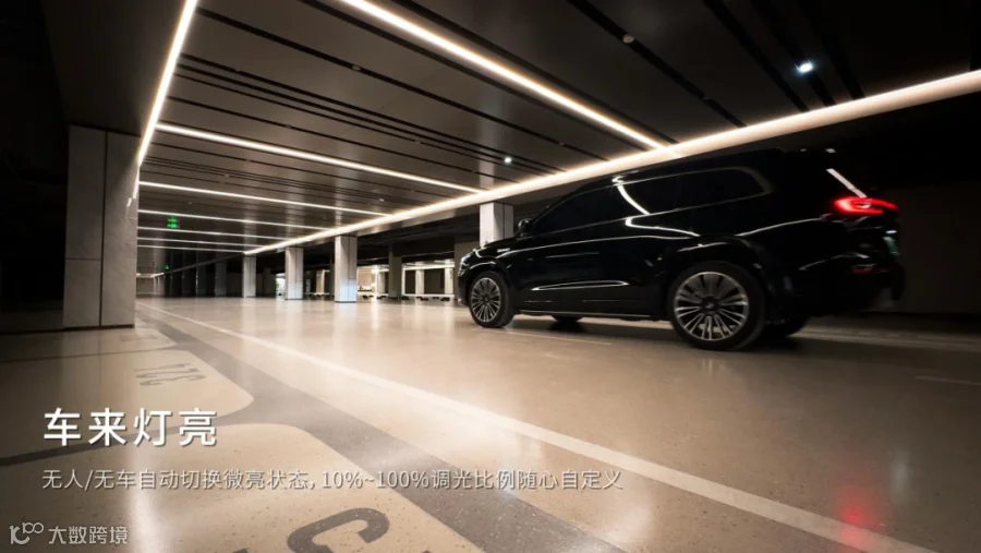 ·车道照明系统通过 智能感应+无极调光,实现“车来灯亮、车走灯暗”,光随车动,形成连续、优雅的视觉引导。