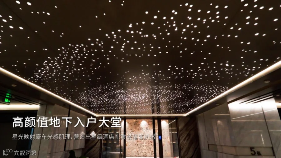 ·地下光厅以星空顶铝板延展视觉尺度,单元标识以发光字符嵌入,结合泛光照明,打造沉浸式艺术光环境。
