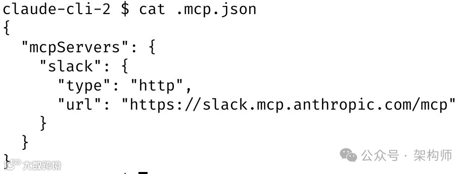 Slack的MCP配置被check in到.mcp.json文件中,与团队共享。