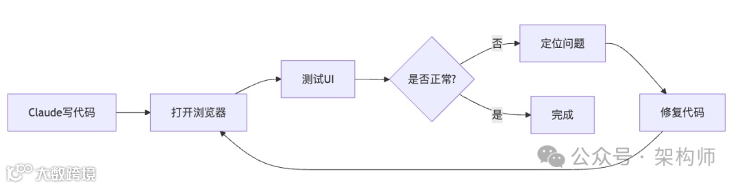 Claude会自主打开浏览器、测试UI、定位问题、完成修复并再次测试,直至代码正常工作且用户体验良好。