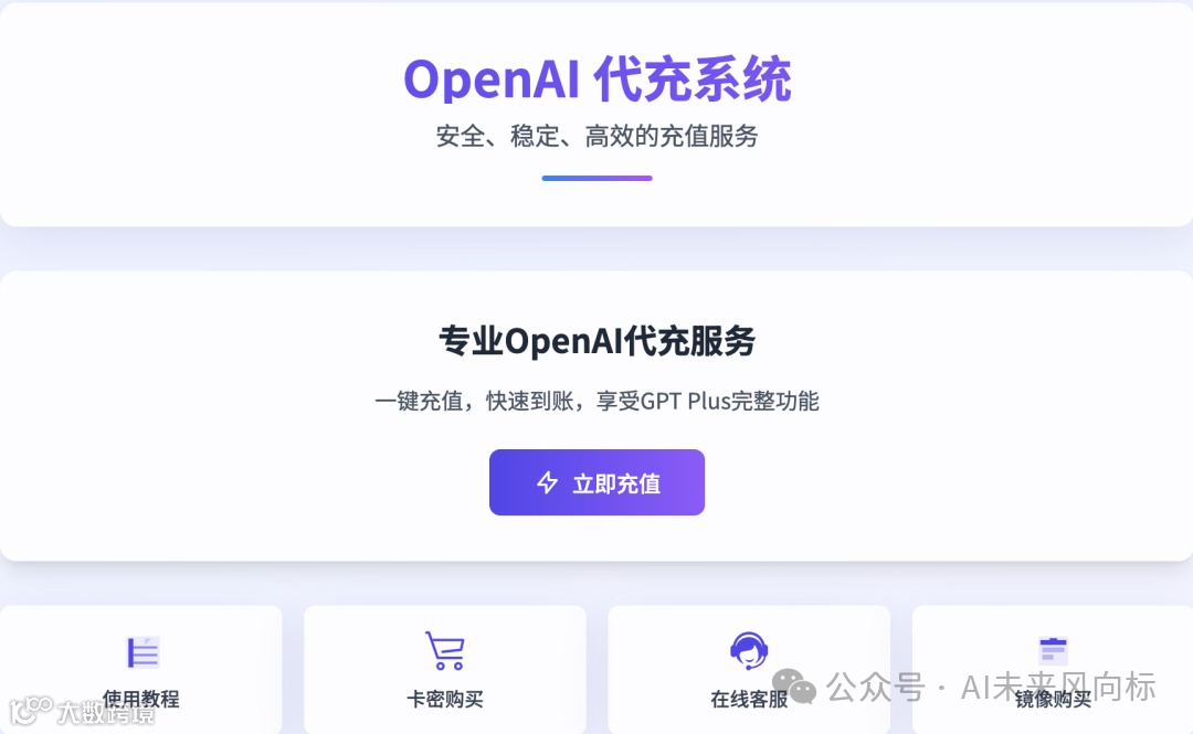 因为Wildcard虚拟卡无法充值,很多伙伴需要升级自己的ChatGPT Plus,下面介绍一个无需注册,无门槛,无手续费,无需提供密码的ChatGPT Plus会员充值工具,上线啦!!!