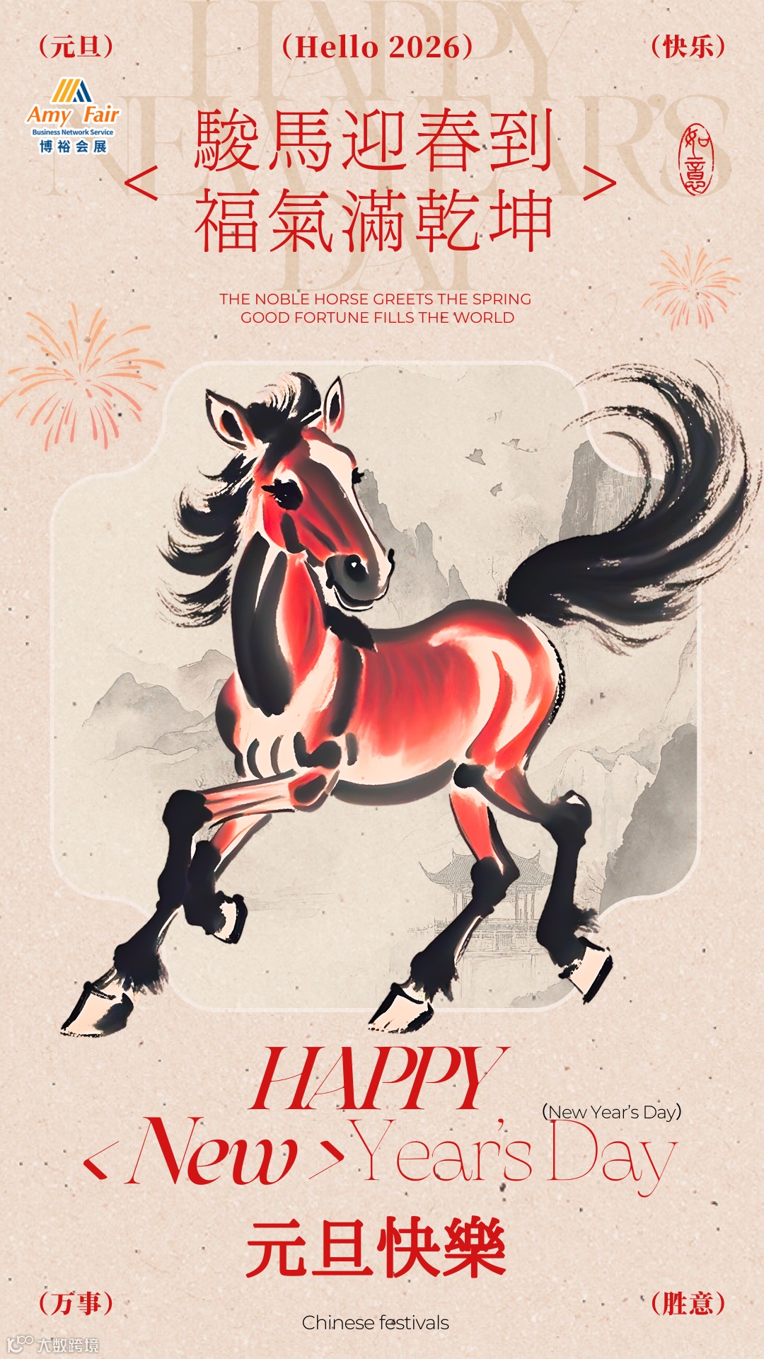 谨向所有合作伙伴、参展商及海外采购商,致以最诚挚的祝福。愿新的一年,事业兴旺,顺遂安康!