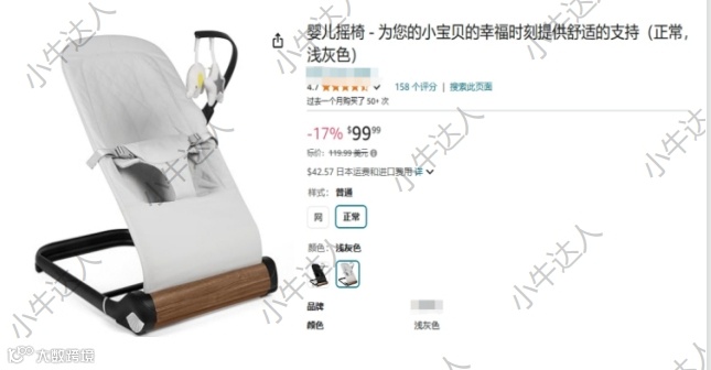 (截至2024年9月11日)评分为4.7颗星,拥有160条来自买家的评论。在【婴儿摇椅和摇杆】商品排行中排名第37名。在过去的一个月,有50+的顾客购买了该产品。