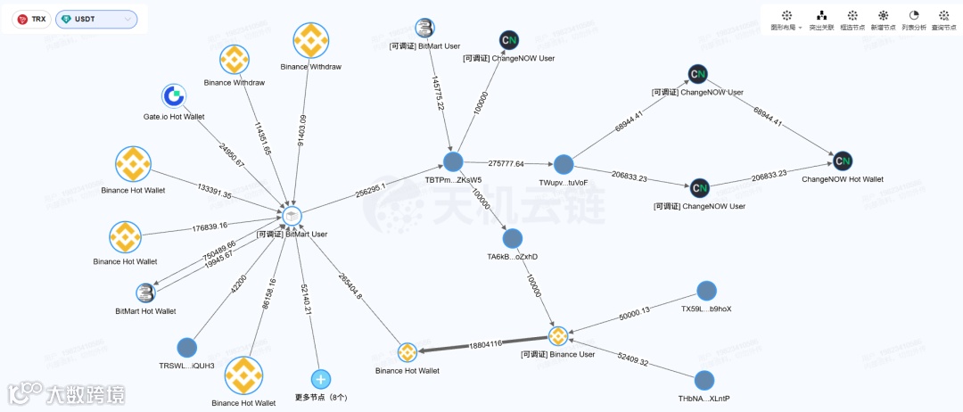 电诈赃款常借助跨链桥在以太坊、波场等多条公链之间迅速流动,使资金以“多链跳转”的方式脱离单一链的监测范围,增加追踪难度。