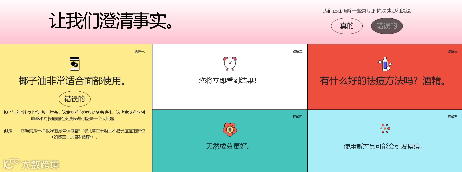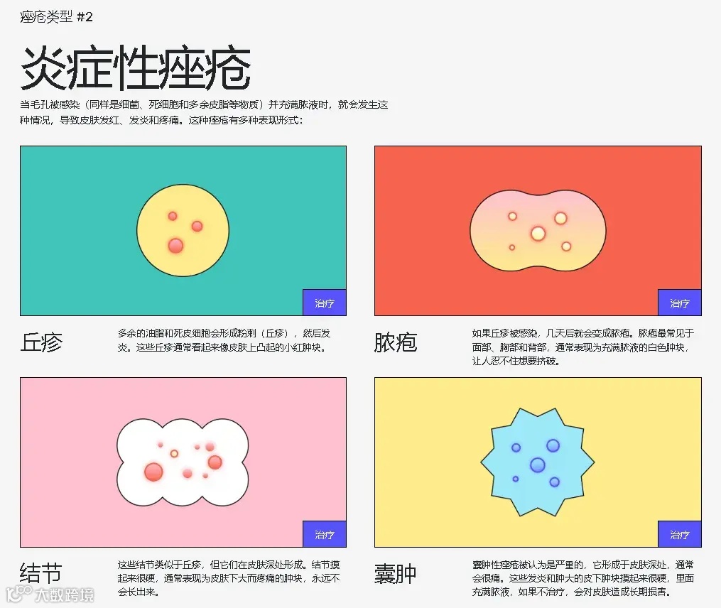 且所有内容都以 Bubble Skincare 的标志性颜色进行呈现,创意的设计结合专业内容很容易让用户“沉溺”其中,不自觉延长在网站停留的时长,不仅教育了受众,还能有效提升品牌形象,进而增强用户的忠诚度。