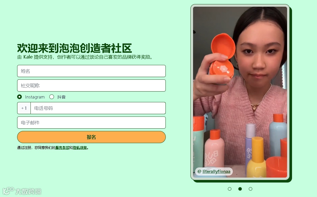 品牌大使:年满 13 岁,在 Instagram、TikTok、Pinterest 或 YouTube 上至少拥有一个有效且活跃的社交媒体帐户,并提供有效的个人电子邮件地址(如果未满 18 岁,还需提供父母或监护人的电子邮件地址)。