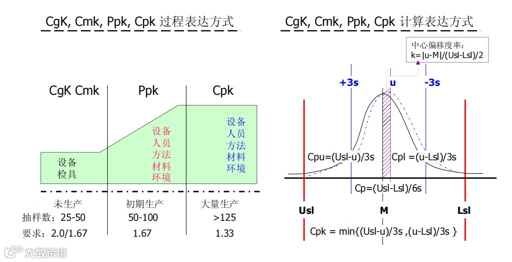 Cgk、Cmk 是“基础能力验证”,Ppk、Cpk 是“过程能力评价”。