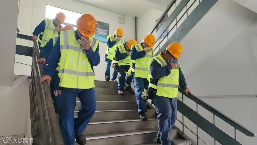 首先开展的是逃生自救能力应急预案演练。火灾发生,重在应急处置“快、准、敏”,消息层层上报,三楼办公室内人员按照逃生要求开始有序逃生,后面有逃生专家组有序组织人员紧紧用毛巾捂住口鼻,左右两边楼梯开始疏散,前面有应急抢险组用大喇叭告知逃生方向。紧接着,人员安全疏散后,小组长向指挥长报告情况同时组织疏散人员排队,医疗组上前检视是否有人员受伤需要救治。