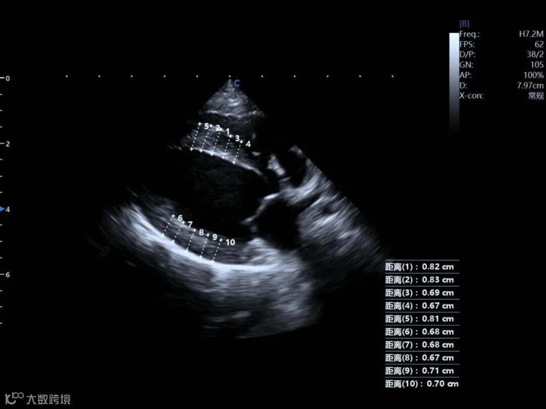 Both the interventricular septum (IVSd) and left ventricular posterior wall (LVPWd) were significantly thickened, each exceeding 0.6 cm.