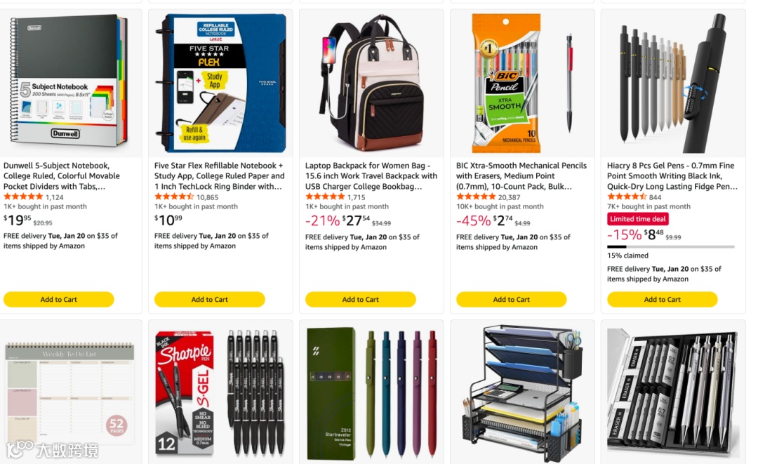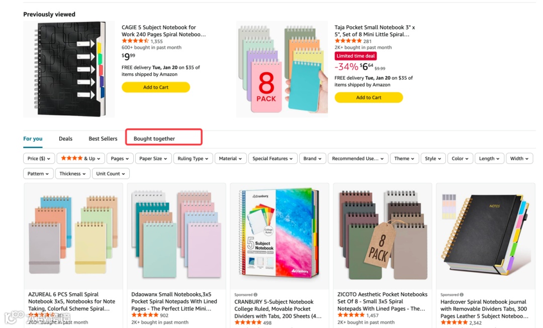 原本你看不到的数据会出现,系统会基于刚才的浏览记录,智能推荐关联商品列表。你可能会发现笔,背包,支架等互补品。重点关注那些你没想到、且竞争不那么激烈的长尾产品。