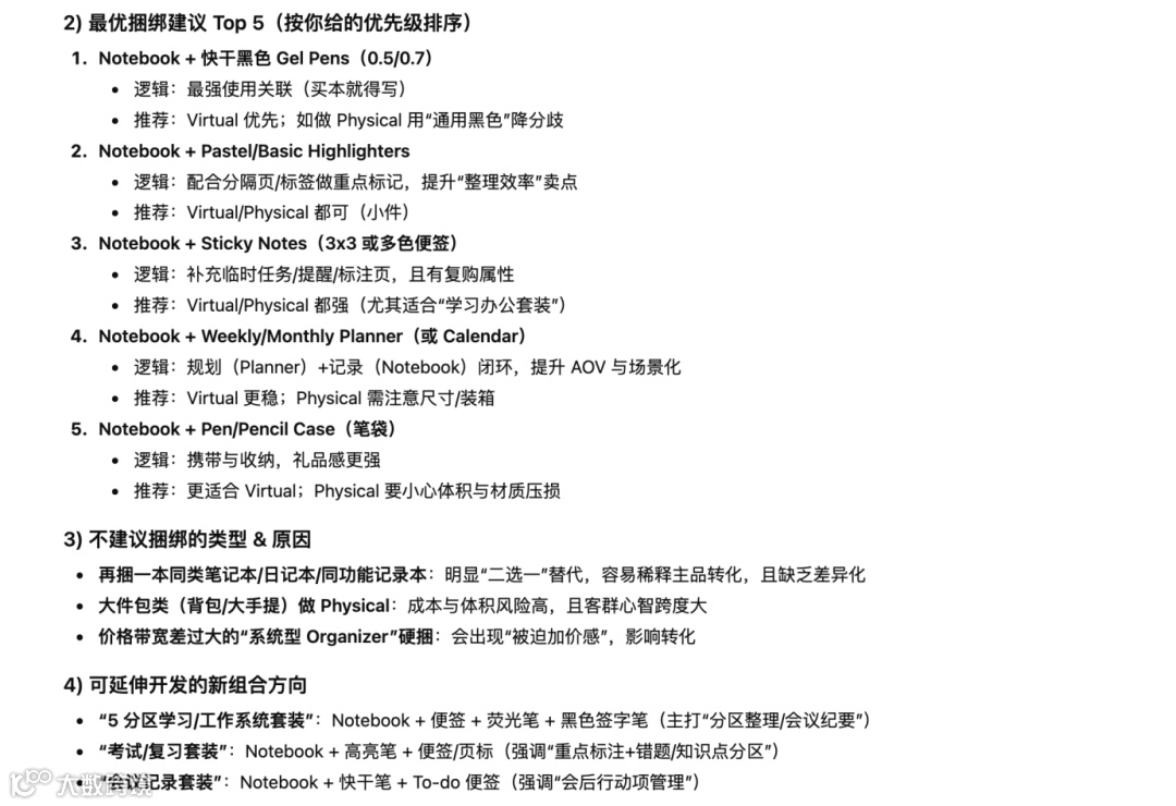 当然要注意组合能为用户提供更便捷的购买体验或更完整的解决方”时,这个选品才是有生命力的。否则,强行捆绑只会增加用户的决策成本,甚至拉低转化率。这三个方法可以去试试呢。
