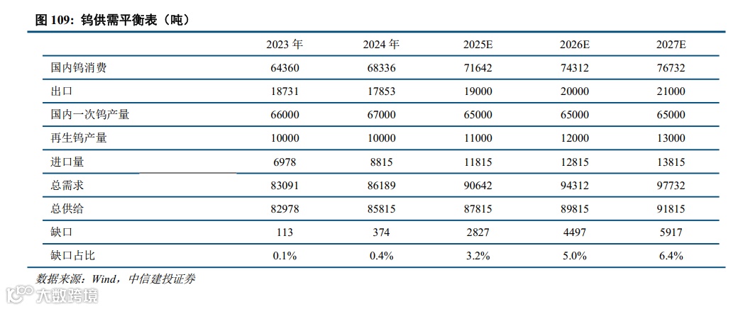 钨供需平衡表