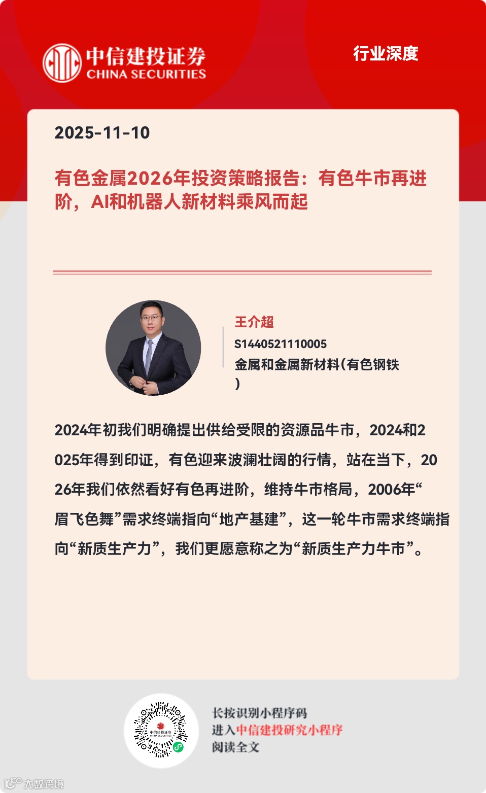 证券研究报告名称:《有色金属2026年投资策略报告:有色牛市再进阶,AI和机器人新材料乘风而起》