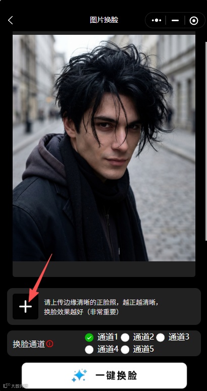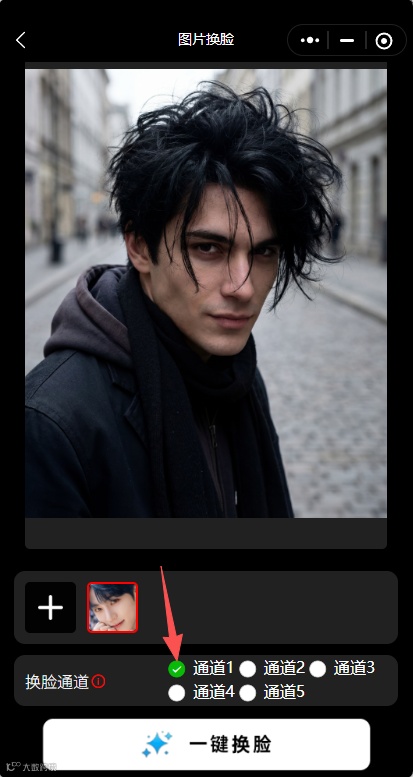 选择通道→一键换脸→保存分享!