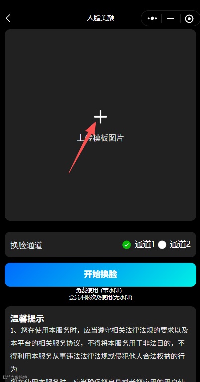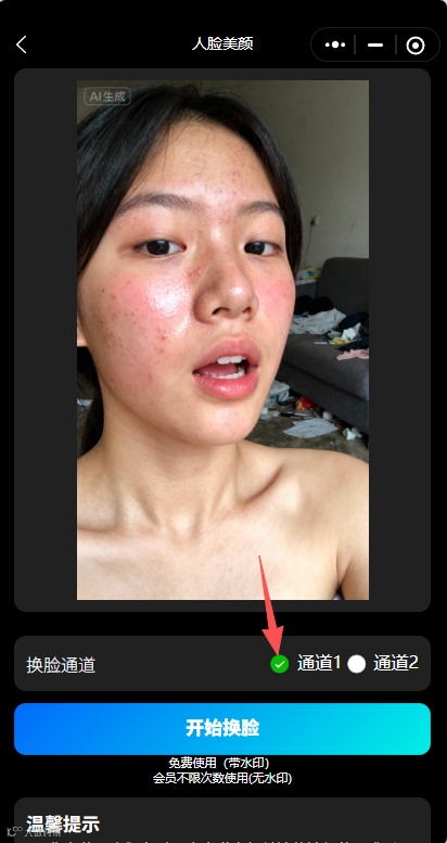 首先,打开AI换脸视频照片神器小程序,点击下方“工具箱”,再点击“人脸美颜”,接着点击“加号”,上传一张你要美颜的照片;选择通道,每个通道算法不同,效果也不同,如果通道失败了,可以再换个通道;点击“开始换脸”,等待处理成功;成功之后,就可以点击“保存”,去可以在相册里查看啦。