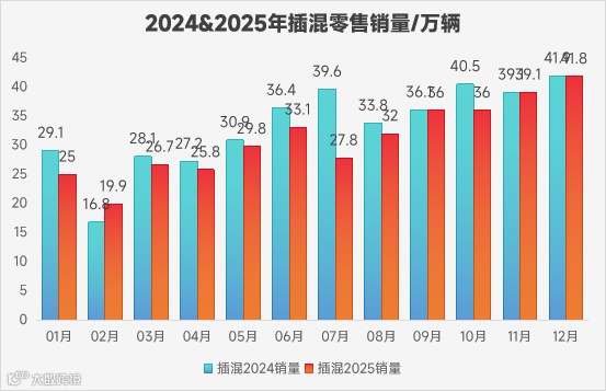 从细分市场来看,纯电车型依然是市场的中流砥柱,全年零售 780.4 万辆,环比增长 33%,占据了近 62% 的市场份额。插电混动车型表现亮眼,总零售 373 万辆,环比上升 4%,其增长主要得益于技术成熟度提升和用户对长续航需求的释放。与之形成对比的是增程式车型,全年零售 119.4 万辆,环比下降 6%,这一变化或与消费者对技术路线的认知深化以及纯电续航里程的提升密切相关。