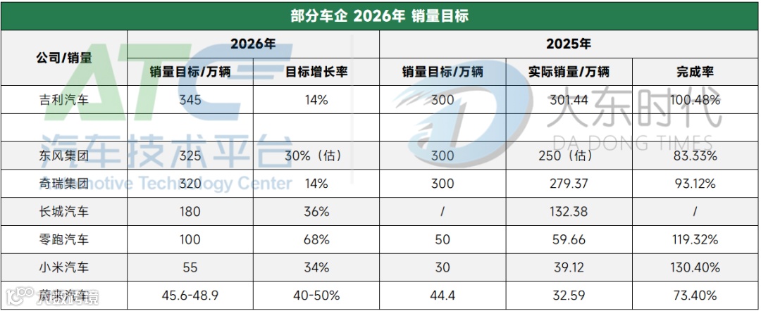 面对 2026 年,各大车企纷纷亮出雄心勃勃的销量目标,行业竞速将进一步升级。