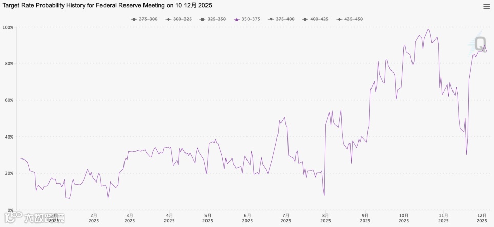核心 PCE 同比增长2.8%,略低于预期的2.9%,名义 PCE 同比维持在2.7%~2.8%区间,强化了“通胀缓慢回落,但仍高于2%目标”的叙事。因为10月PCE数据永久缺失,而11月数据要在美联储12月议息会议之后才发布,9月PCE数据成为12月10议息会议前的唯一参考。低于预期的通胀数据,强化了12月降息,甚至2026年持续降息的预期。
